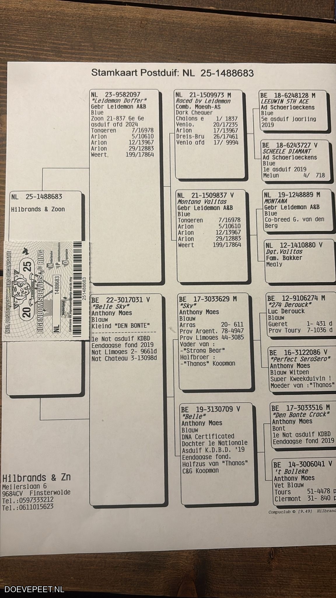 0642 Koop 2 Karin Kattenbelt 1e ronde van de vliegers Karin schenkt een bon uit de 1ste ronde van de vliegers, ook dit jaar was het motto doorgaan en niet opgeven!Dit resulteerde dan ook in een 4e en 6e NPO afdeling 9 op de jonge duivenvlucht Dizy Le Gros met in het concours maar liefst 5.032 duiven.De verschillende soorten die bij Karin op het hok zitten benoemen we niet want tja,een stamboom vliegt immers niet!! Wie gaat er vandoor met deze mooie bon?!Zaalverkoop zo...