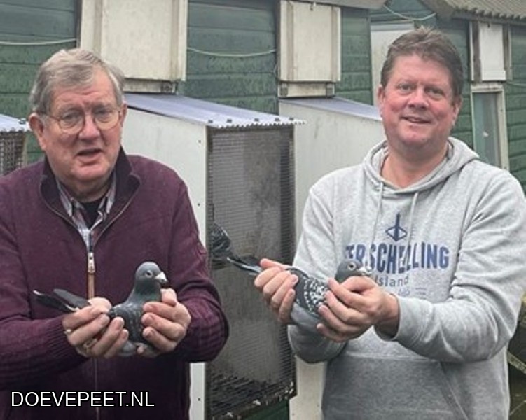 Gerrit en Jaco schenken een jonge duif 2026 in overleg.