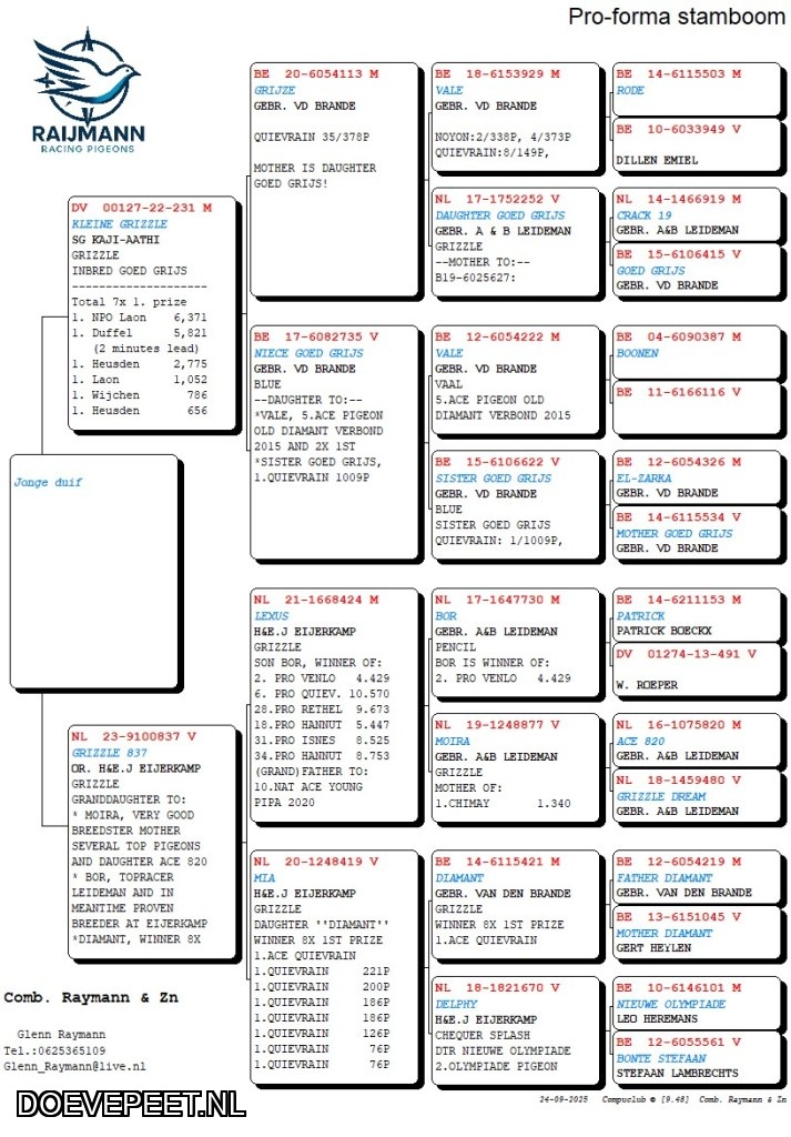 DMP Bon 113 Raymann & zn - Oss - jonge duif van 2025