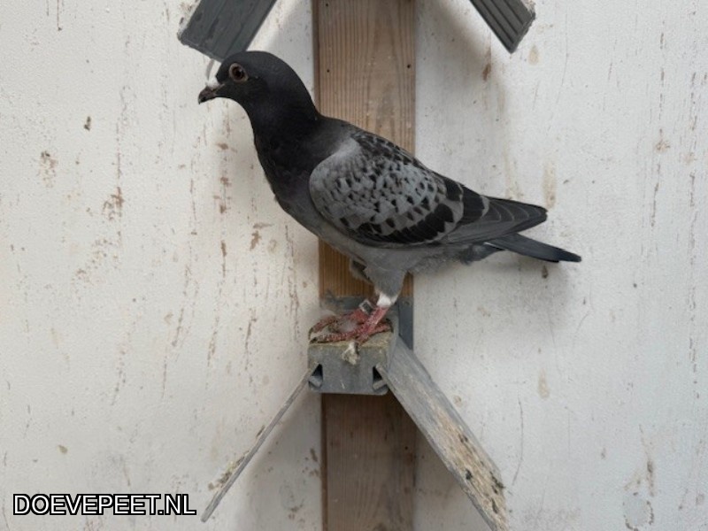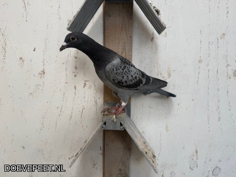 een jonge duif van 2025 is uit de lijn van Goed Grijs en Diamant, gebr. Vd Brande
