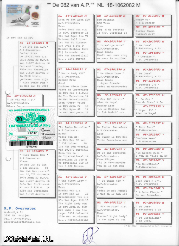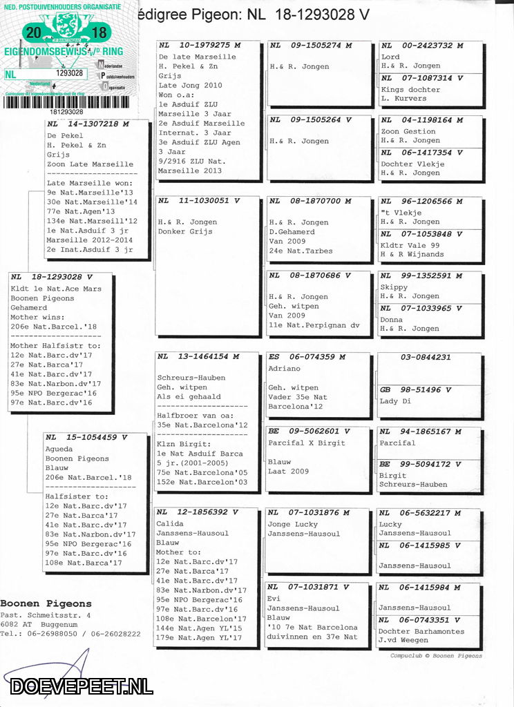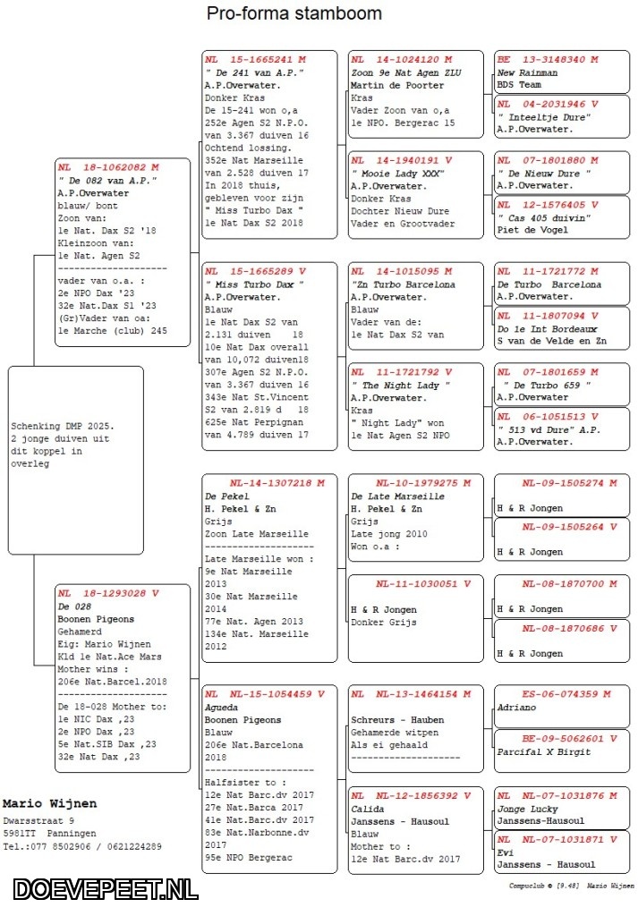 DMP Bon 119 Mario Wijnen – Panningen -2 jonge duiven uit dit MD - Fond koppel 1/2