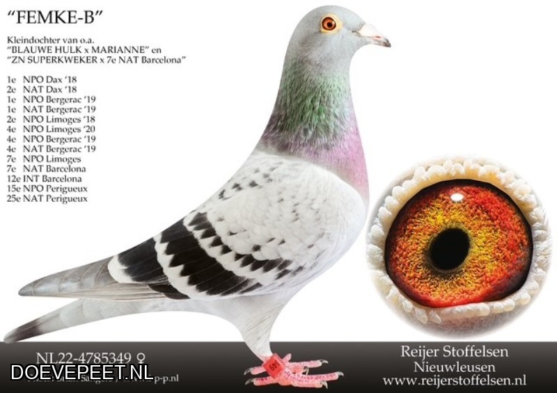 · “Thunderqueen” van Chris Paauwe – 1e Internationaal Narbonne duivinnen 2022 en 2e FCI World Best Pigeon Super Marathon 2022.