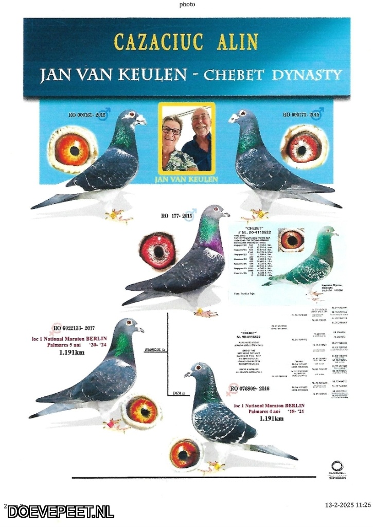 DMP Bon 38      Jan van Keulen – Asten 1/2   - Jonge duifPrijzen nationaal gevlogen in de loop der jaren top 1002e Nationaal Barcelona duivinnen3e Nationaal Barcelona4e Nationaal Perpignan5e Nationaal Barcelona8e Nationaal st Vincent23e Nationaal Perpignan41e Nationaal Perpignan44eNationaal Marseille61e Nationaal Marseille77e Nationaal Barcelona82e Nationaal Perpignan100 Nationaal BarcelonaRutz en Shonne winnen Nat en internationaal Pau 2006 met een Kleinzoon uit de halfbroer Mis Hay...