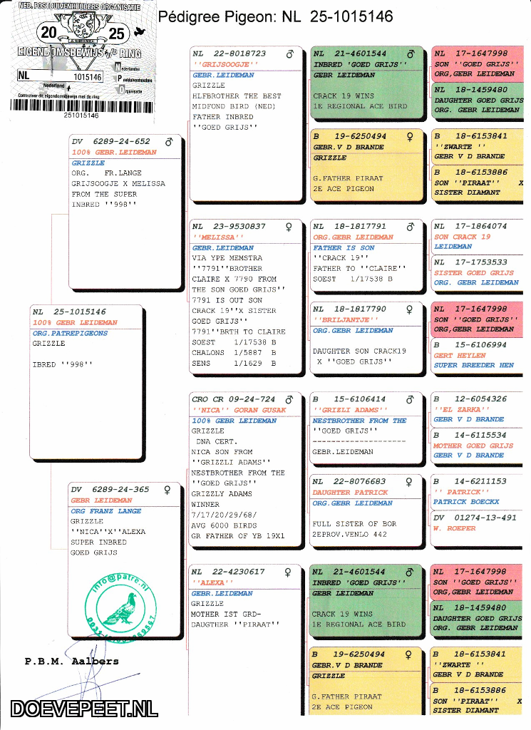 Grizzle 100% Leideman Van origineel Patrepigeons
