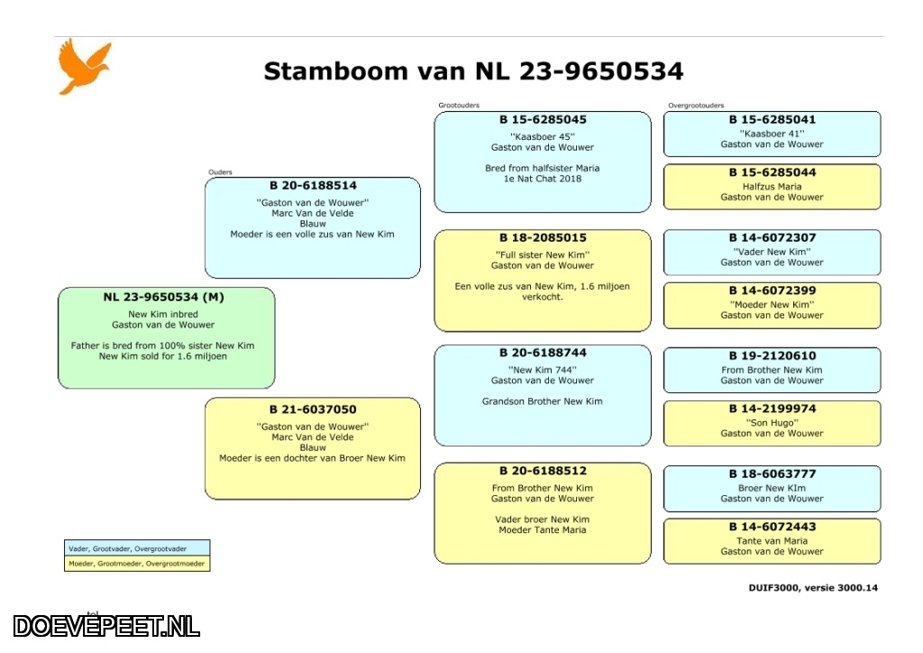 Koopman. Vader is Kanu, gekweekt uit New Hope en Kjeld’s Choice. Moeder is