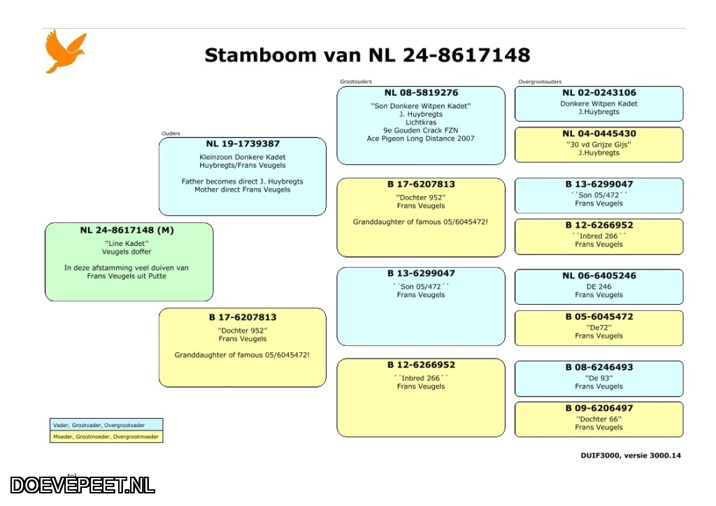 Koop 9 NL24-148 DuivinVader: Gekweekt uit een doffer
