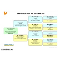 Moeder: rechtstreeks AP Overwater. Is een directe dochter van De Barcelona Turbo. 1e Internationaal Asduif Barcelona over vier jaar.